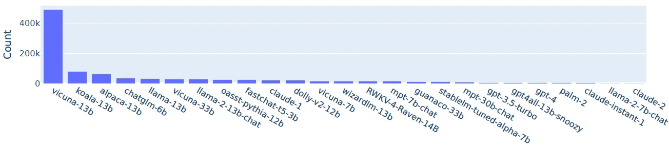 | lmsys-chat-1m | lmsys-chat-1m | Paper: arxiv, Size: 1,000,000. 1M real conversations (210K users with 25 different SOTA LLMs), 154 languages, avg 2 turns per conversation |