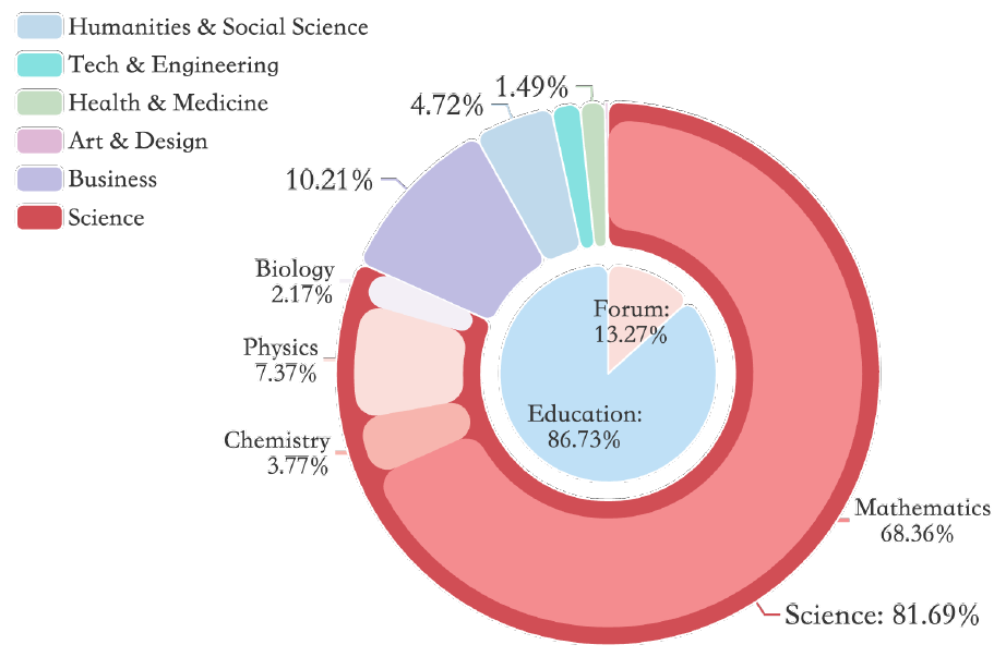 To ensure diversity in our training data across various disciplines like math, science, and engineering, we propose crawling exam problems from educational websites such as stemez.com, homeworkstudy.com, and khanacademy.org. We collected 100K diverse seed examples and randomly selected 100K negative documents from Common Crawl (CC) for training a fastText model.